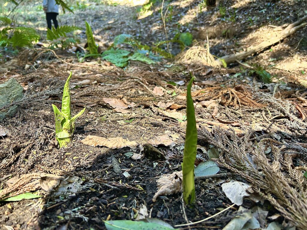 蕾がつき始めました。(注 写真2枚目のとおり崩落個所がございますので行かれる際は落石やがけ崩れに細心のご注意を。)