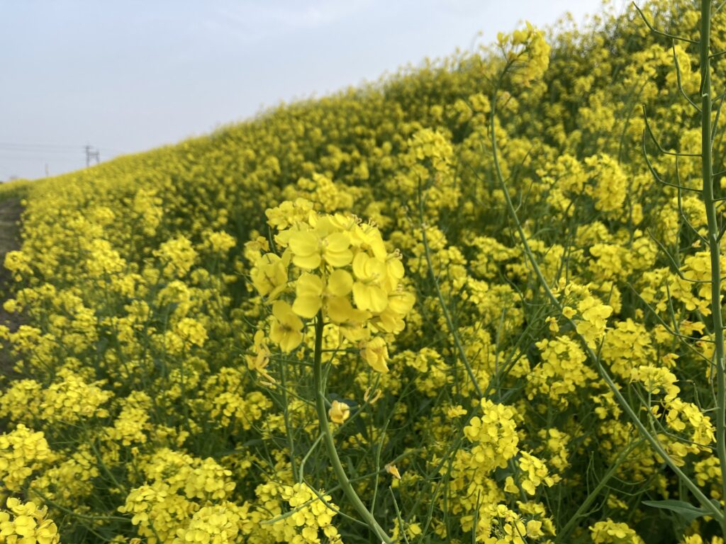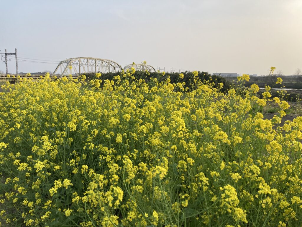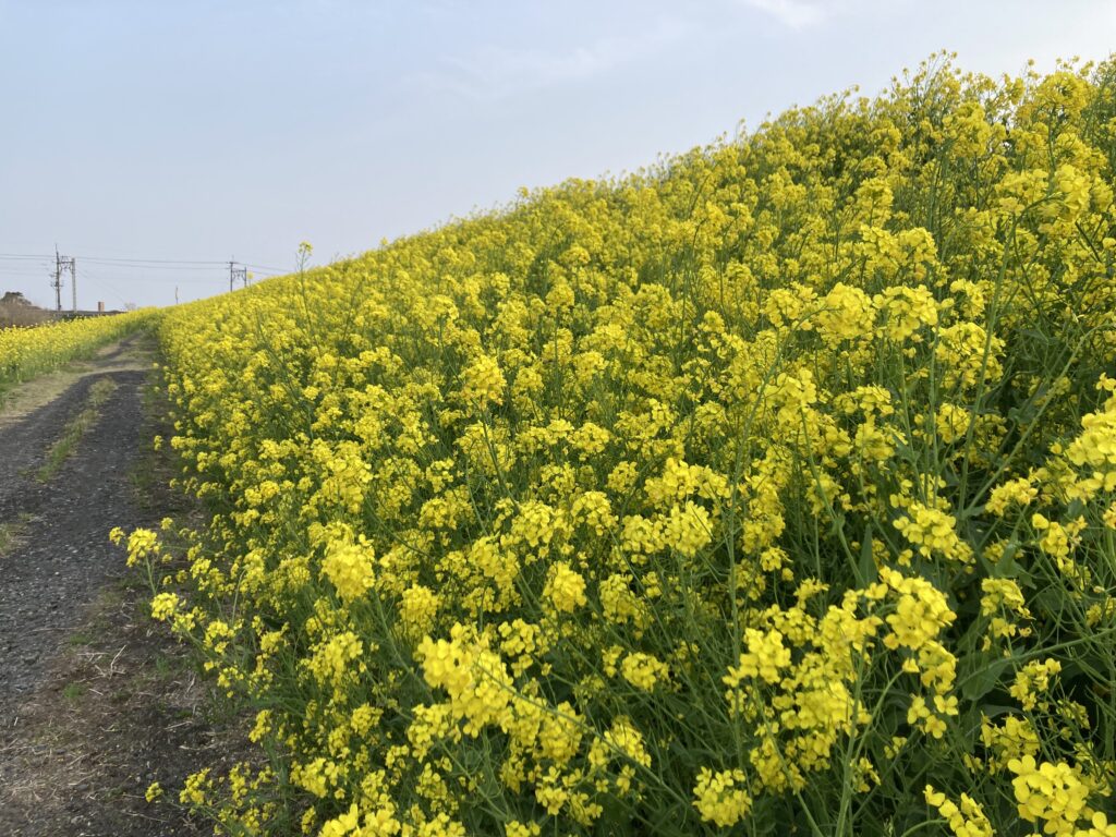 ※写真6枚目のとおり国土強靭化対策工事にて護岸工事が行われており、県道7号~渡良瀬川緑地西側の間は立入禁止となっております。菜の花は渡良瀬川緑地東側~菊沢川排水機場~東北自動車道西側の区間でお楽しみいただけます。