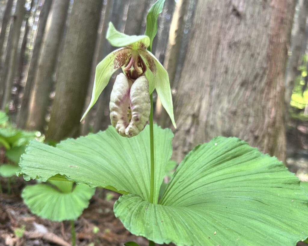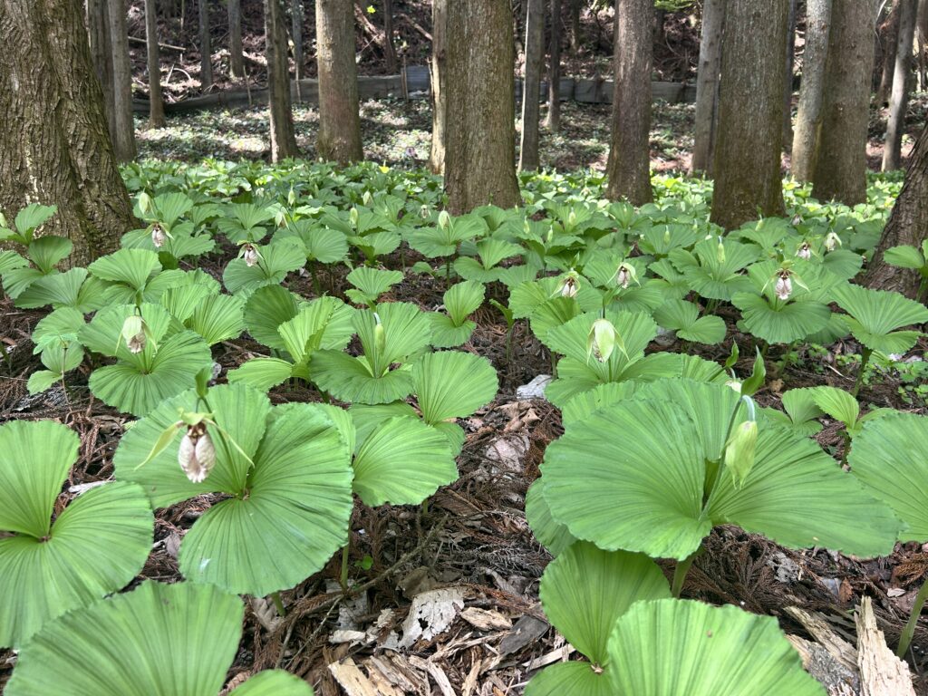 ラン科アツモリソウ属に分類される多年草。扇型の特徴的な葉をつける。名の由来は、膨らんだ形の唇弁を昔の武士が背中に背負った母衣に見立て、源平合戦の熊谷直実にあてたものと伝わっている。環境省により、レッドリストの絶滅危惧II類(VU)の指定を受けている。