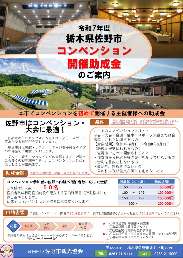 佐野市では、学会・大会・会議・スポーツ大会・合宿など、多くの人が集まり交流を深めるコンベンションを新たに市内で開催する主催者を応援するため、「コンベンション開催助成金」をご用意しています。